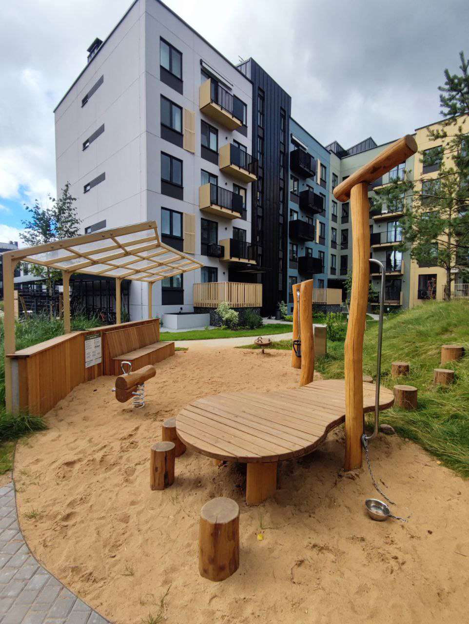 На первом этаже дома оборудованы удобные вспомогательные помещения: комната для мытья лап домашних животных, колясочная, оригинальная чат-доска для общения соседей. Закрытый и благоустроенный двор, включающий в себя территорию двух домов, гарантирует безопасность и спокойствие, круглосуточное видеонаблюдение. Гостевая парковка расположена по внешнему периметру за шлагбаумом. Для маленьких жителей предусмотрены детские игровые площадки, для взрослых – уютные зоны отдыха с барбекю и проектором, велобоксы.