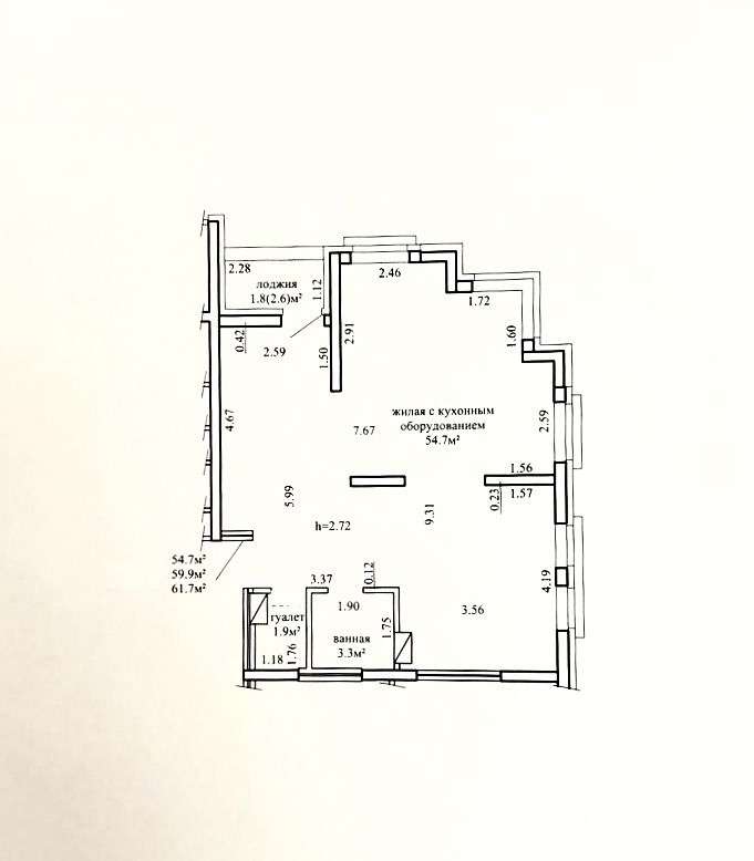 - Общая площадь: 61.7 м2 – оптимальный размер для комфортной жизни.