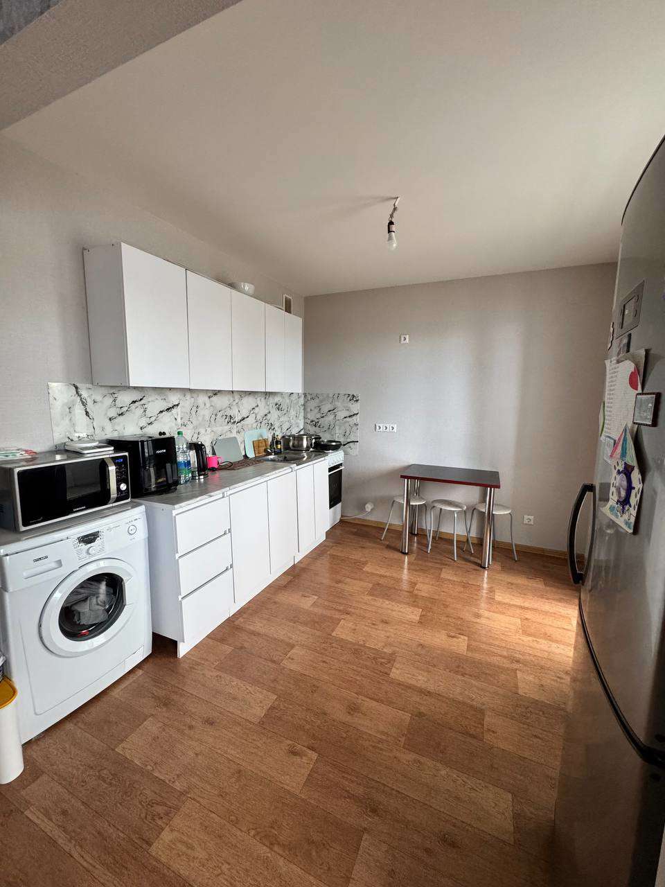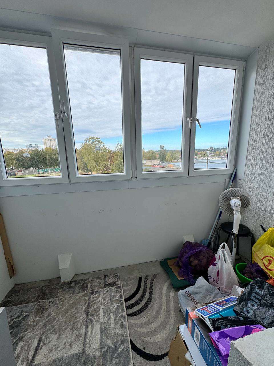 Кухня по-современному совмещена с комнатой, при необходимости есть беспроблемный вариант перепланировки с их изолорованием. Лоджия выходит из кухни. Окна на запад.