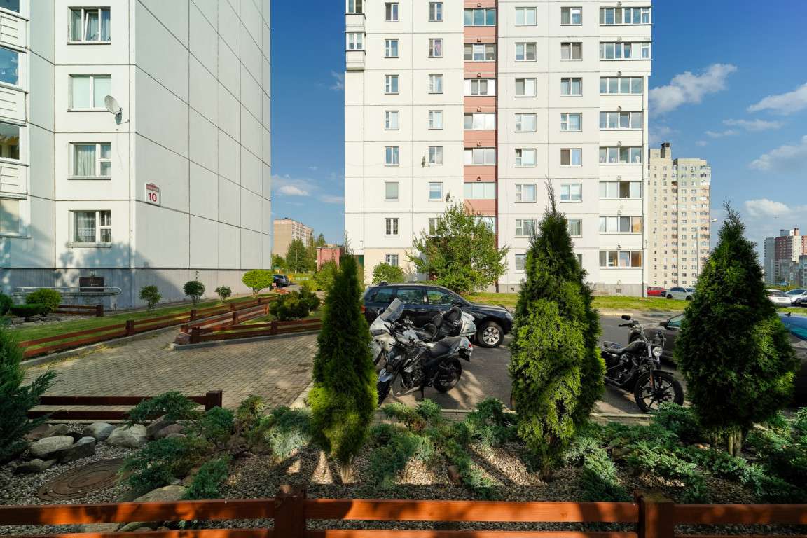 Рядом: Евроопт, Гиппо в шаговой доступности, банно-оздоровительный комплекс «Сухаревский», ТЦ Максимус.