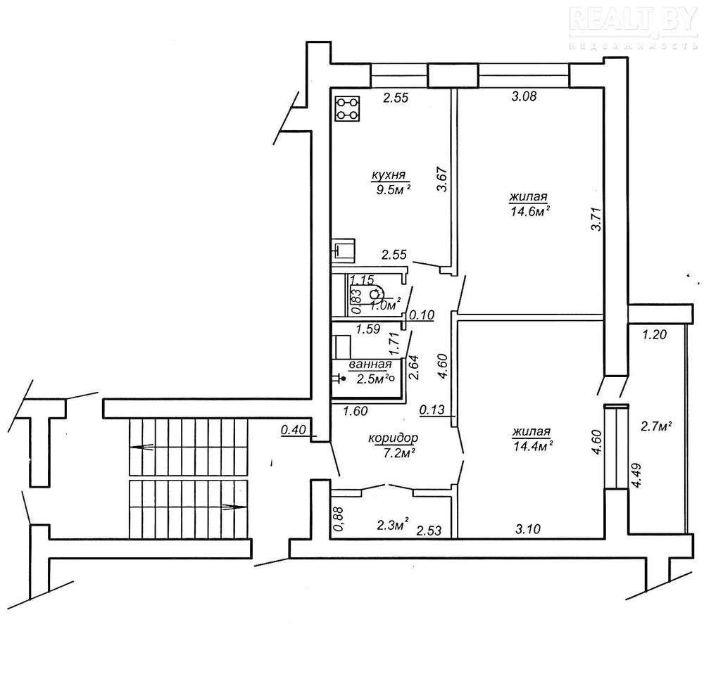 2-комн.кв. 54,2 кв.м на 2-ом этаже кирпичного дома 1982 г.п., без отделки, на полу стяжка.