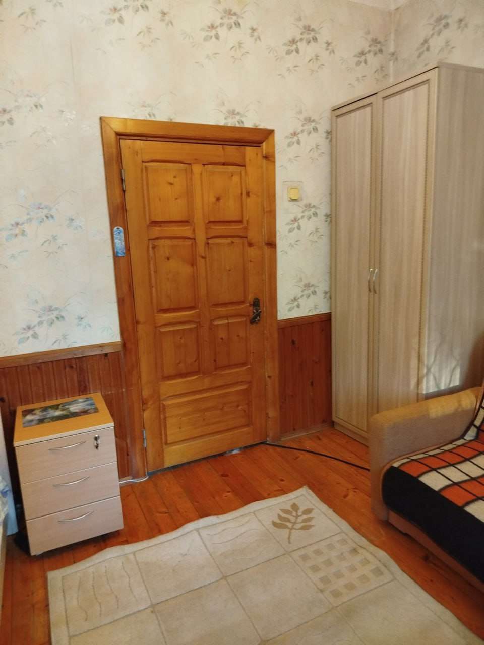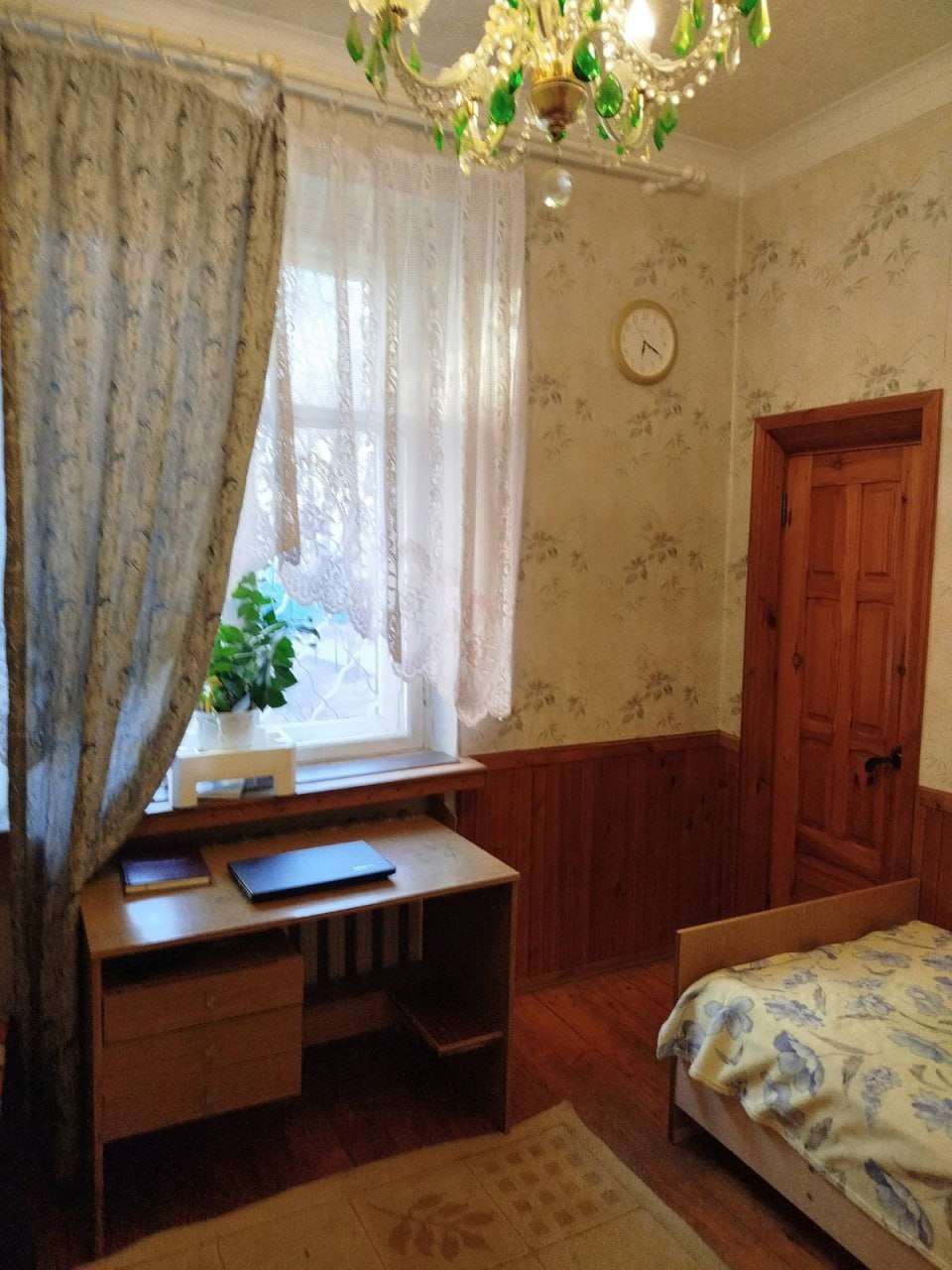 В квартире высокие потолки (3 м), большие и светлые комнаты, атмосфера тепла (чугунные батареи обеспечивают отличное отопление). Полы деревянные, металлическая входная дверь.