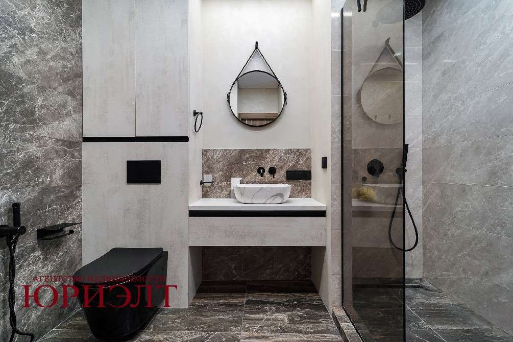 Санузел с инфракрасным душем, есть бойлер. Сантехника Omnires. Холодильник Bosch, стиральная Lj, посудомоечная машина Midea, кондиционер Lj.
