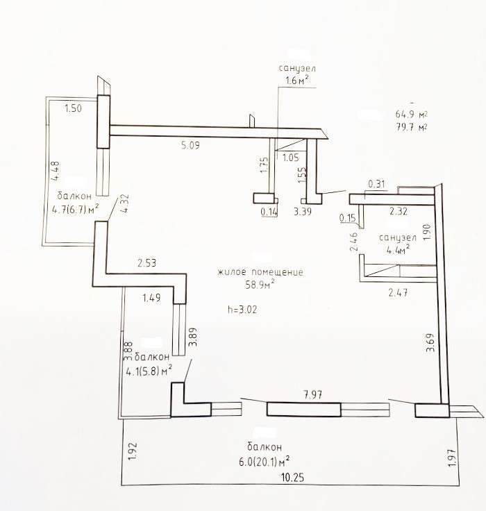 79.7 м2 - метраж всей квартиры. Высота потолков - 3.02. Ремонт выполнен по проекту дизайнера материалами премиум класса. Скрытые двери невидимки.