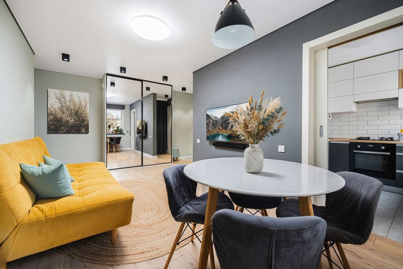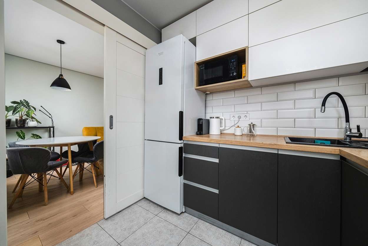 - В квартире функционирует система Умный дом, что позволяет управлять освещением и температурой теплого пола на кухне.