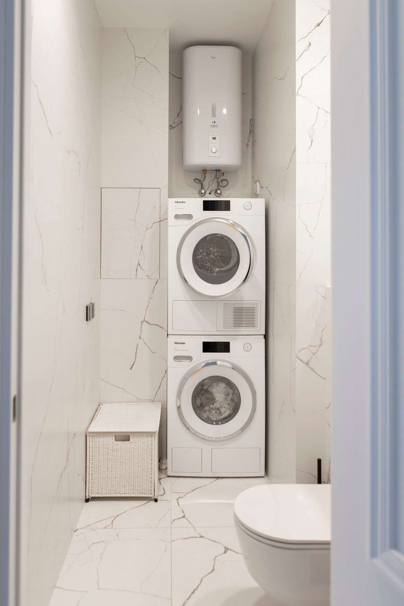 - Квартира оснащена техникой Miele( посудомоечная машина, духовой шкаф со встроенной микроволновой печью, холодильная и морозильная камера, индукционная варочная со встроенной вытяжкой, стиральная машина, сушильная машина), телевизор Samsung QE55QN90AAU, бойлер, смесители и душевой гарнитур Rubinetti, паркетная доска Bauwerk дуб, итальянская плитка, свет Центрсвет, диван Hay, стол и стулья Hay, корпусная мебель Домани.