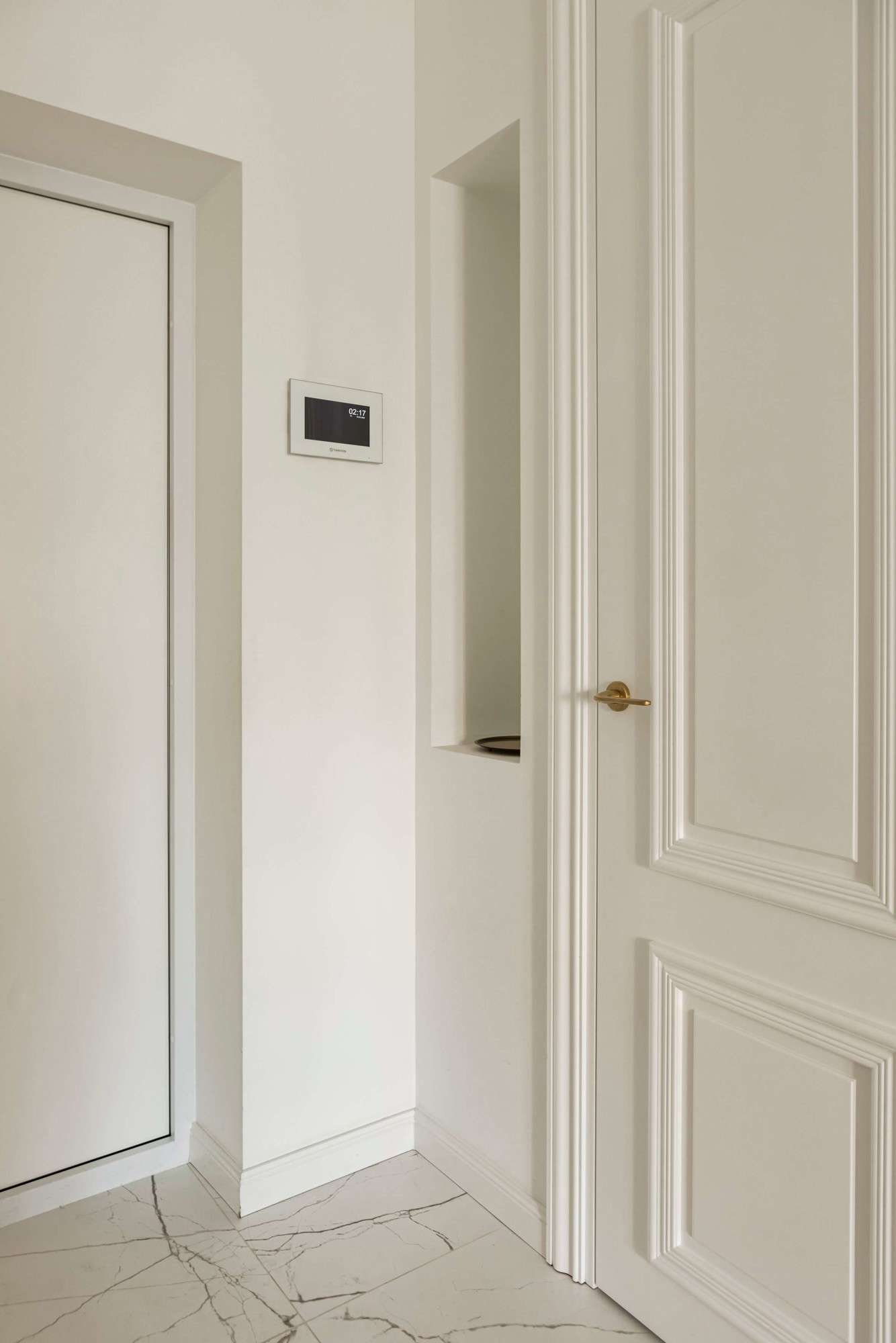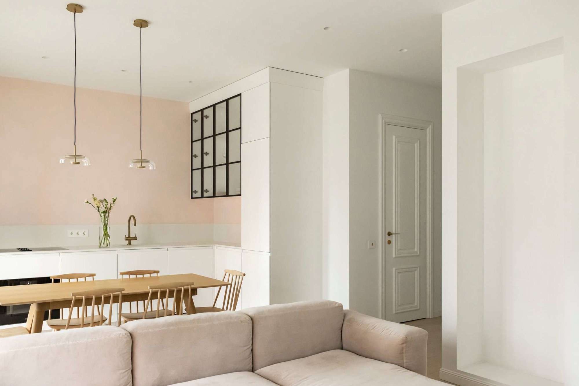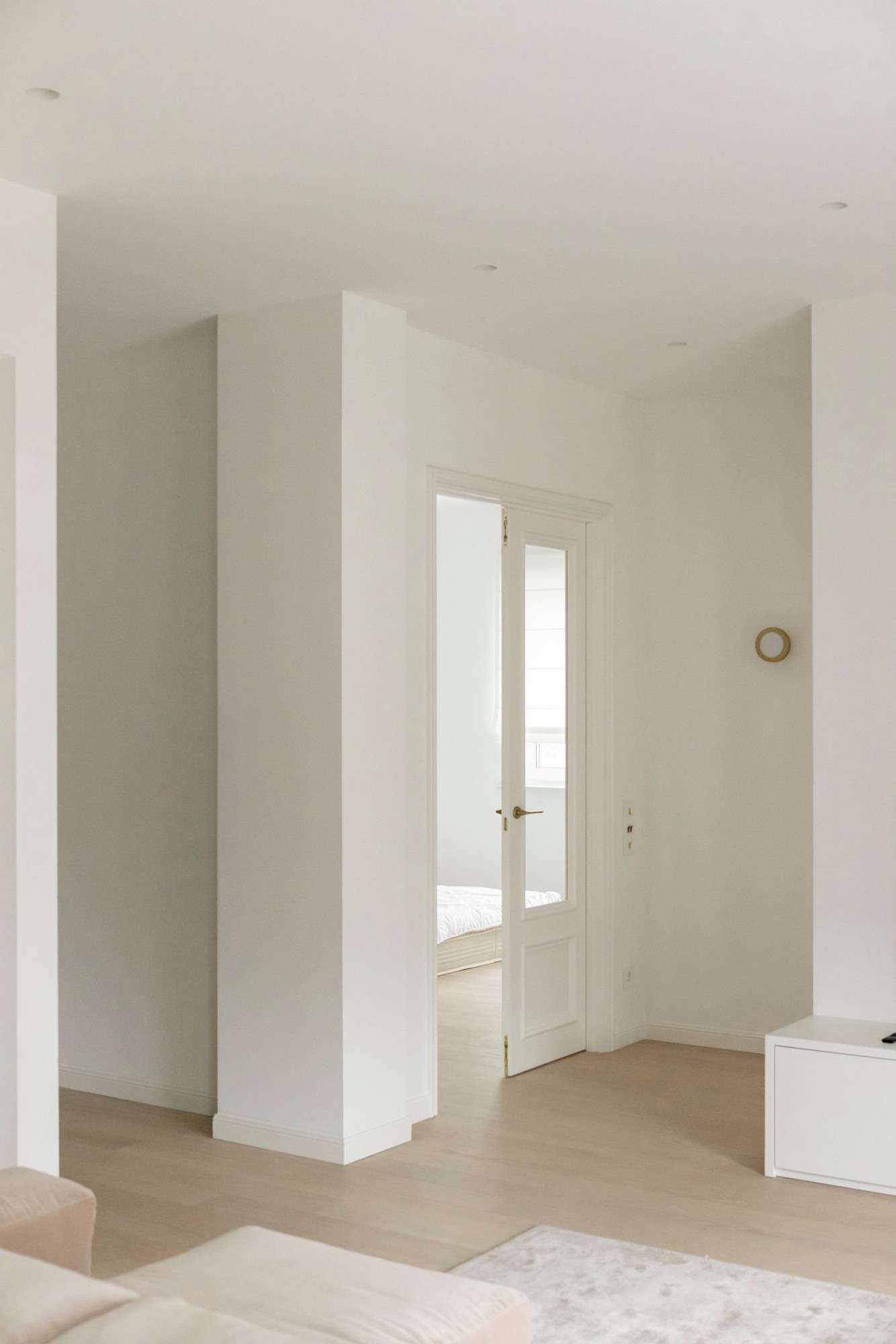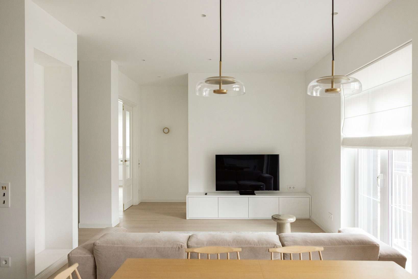 - Светлая, просторная, минималистичная квартира с акцентом на детали, продуманной планировкой.