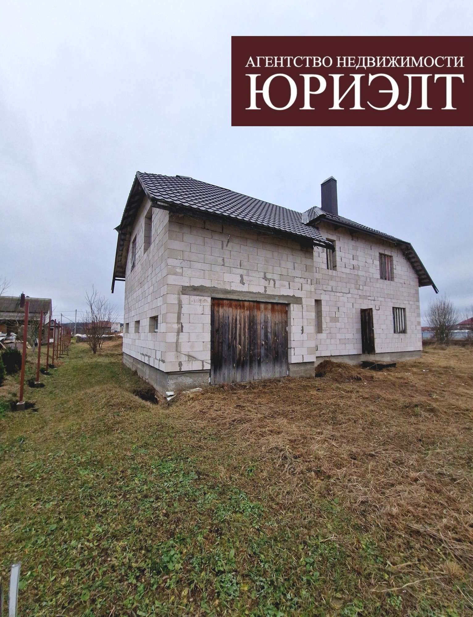 Двухэтажный дом построен из блоков, крыша- металлочерепица.