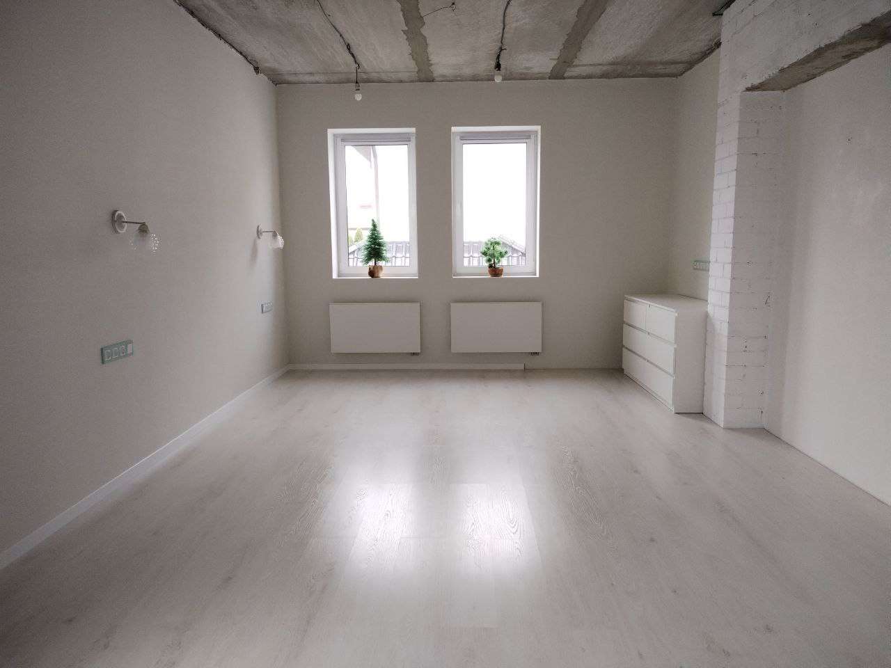 Мансардный этаж: 82м2 с черновым ремонтом. Выведены электрика и отопление.