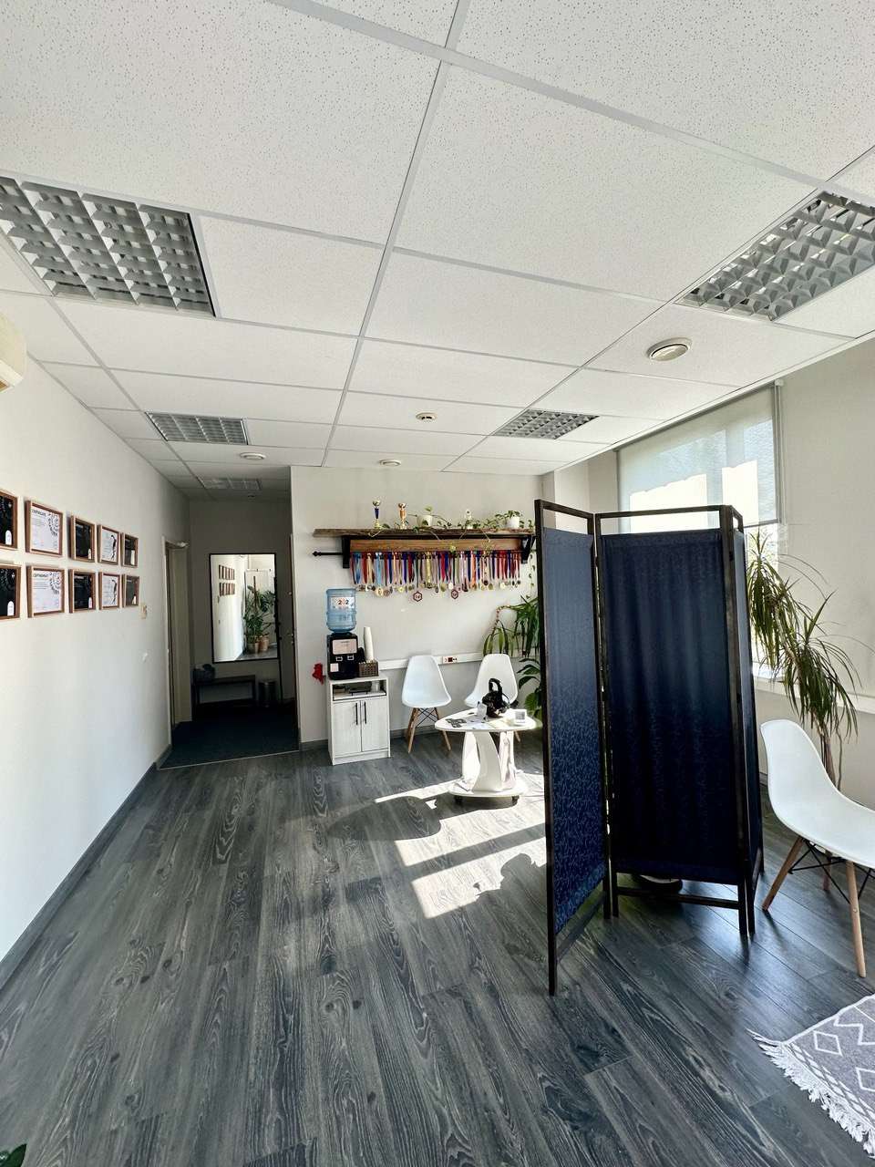 Просторный коридор, кабинеты, приемная, залы переговоров, кладовые, демонстративный зал, сервисная, два сан узла.