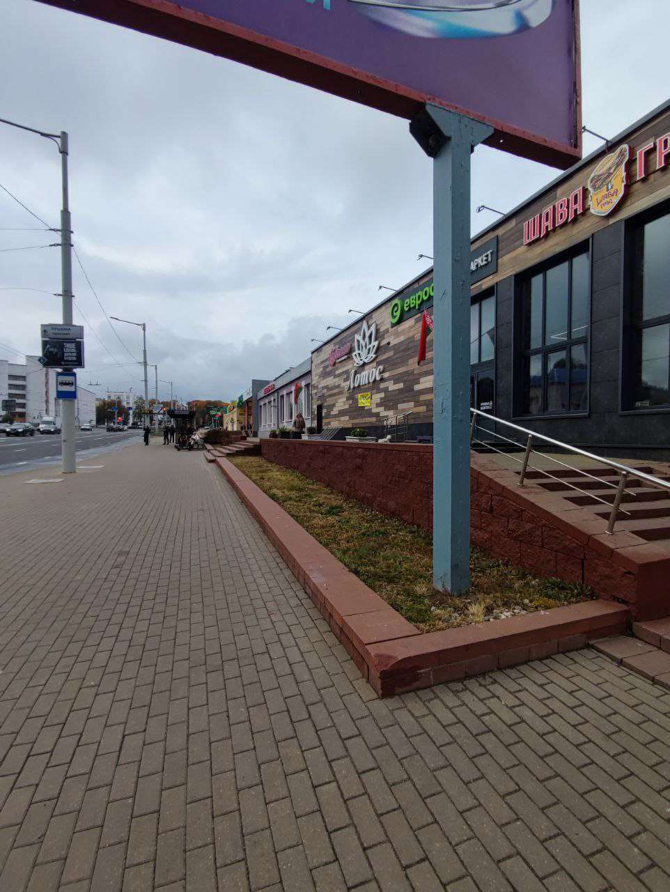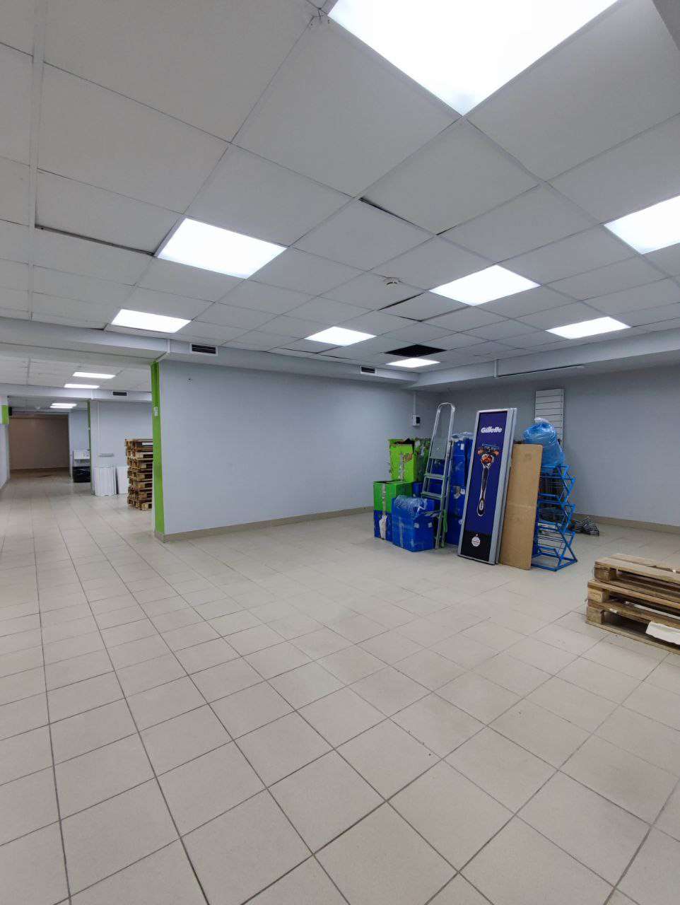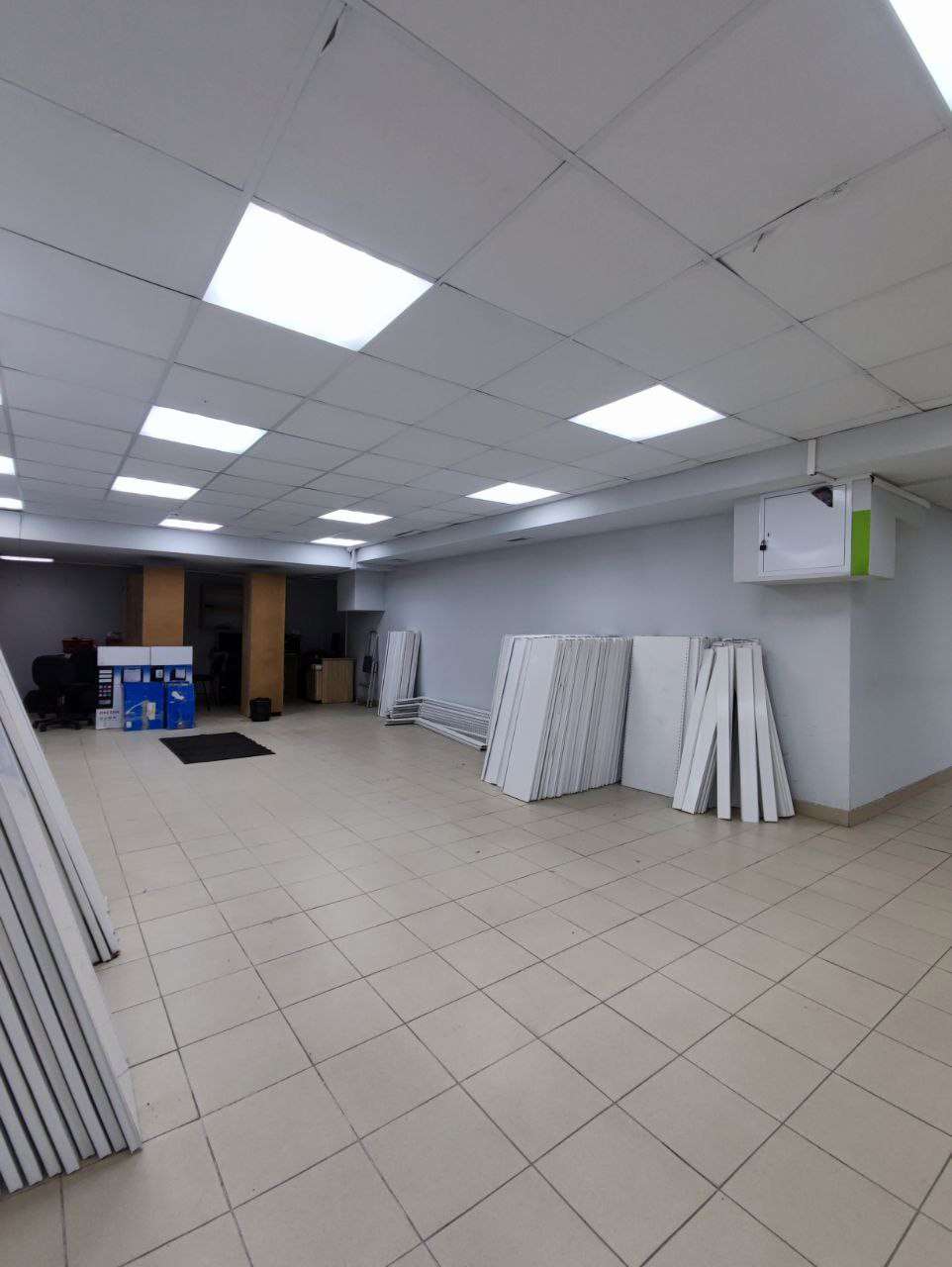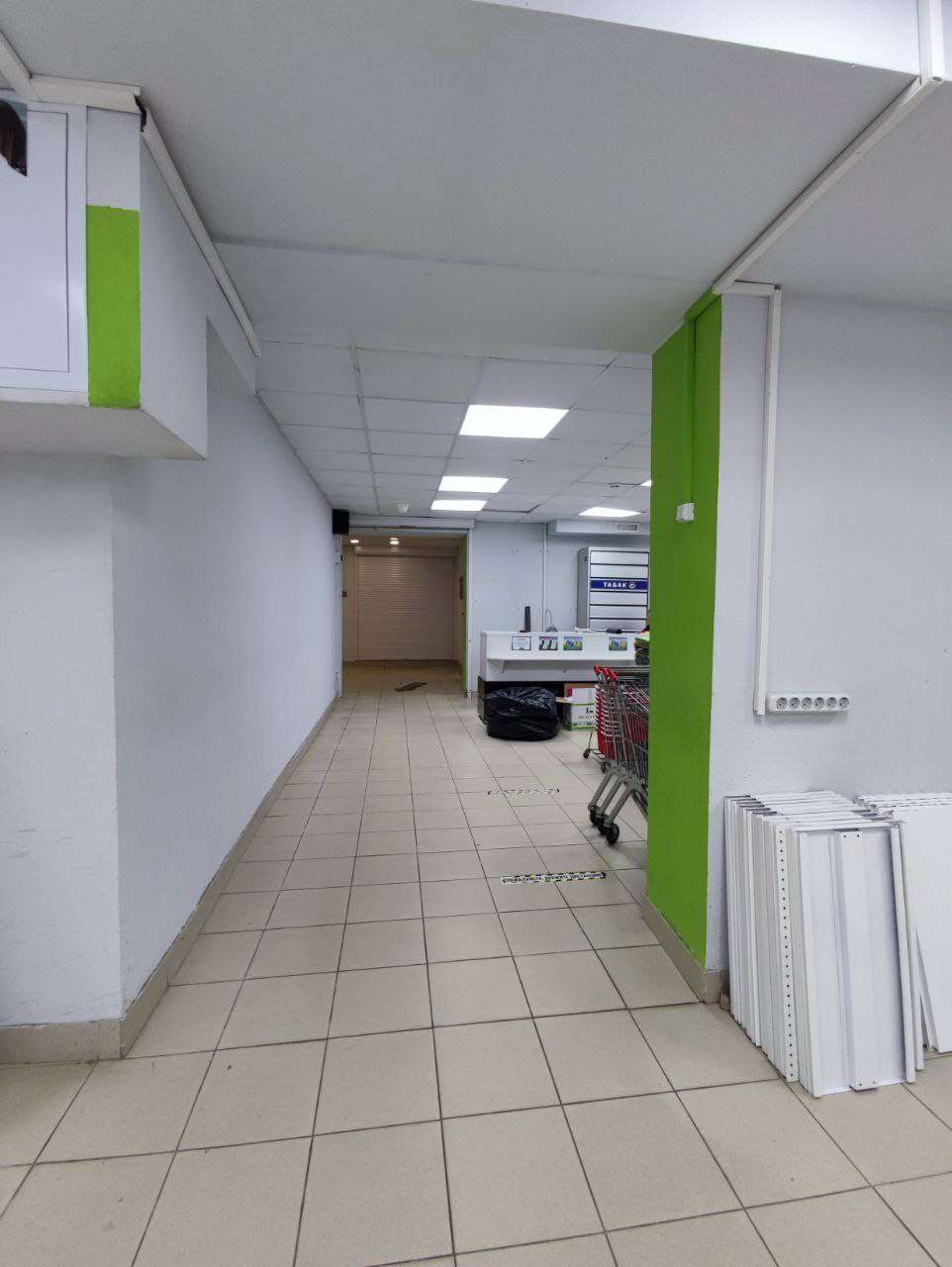 На полу плитка, потолки армстронг, рядом остановка транспорта и ст.м Молодежная
