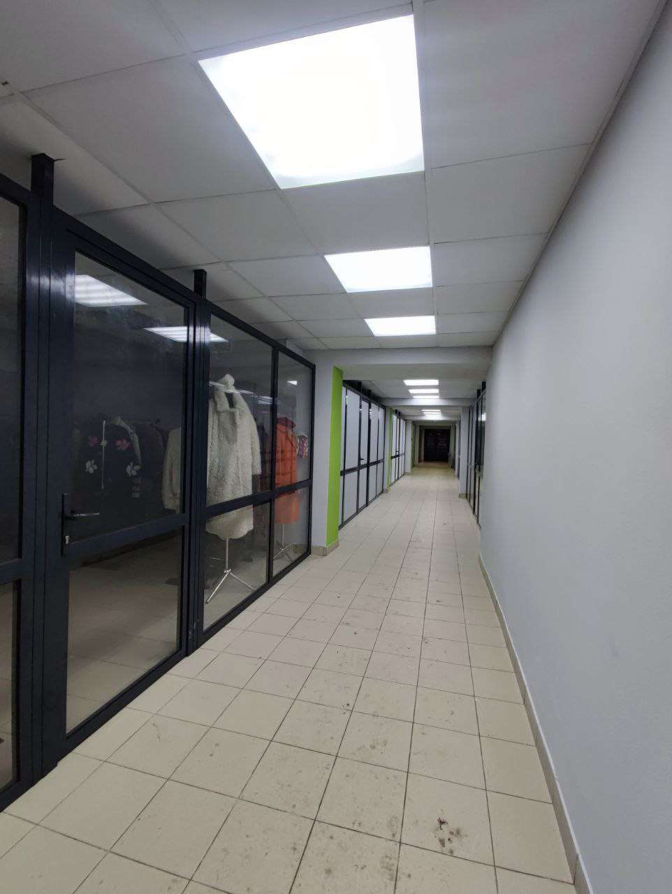 Есть 2 с/у, помещение для мытья инвентаря, электричество. На полу плитка, потолки армстронг, рядом остановка транспорта и ст.м Молодежная.