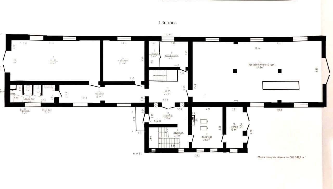 Отдельно стоящее здание на 1 га земли в границах Уручье (Военный городок) - Колодищи.3-х этажное здание площадью 578 кв.м. Назначение - административно-хозяйственное.На 1-м этаже расположены производственные помещения: 64 кв.м., 144 кв.м., два смежных ( 31 кв.м.+19 кв.м.), котельня 9 кв.м. (отапливается твердым топливом), сан./узел.;Высота потолков 4 м, два цеха имеют распашные ворота, отопление, естественное освещение, свет, вода ( собственная скважина).На 2-м этаже: 2 смежных помещения ( 27.8 кв.м.+ 31.5 кв.м.);На 3-м этаже: 3 офисных помещения ( 13 кв.м., 13 кв.м., 21 кв.м).Здание расположено в лесу, отличные подъездные пути ( со стороны агрогородка и трассы), рядом остановка городского автобуса №167 ( от ст.метро Уручье).Назначение земельного участка - земельный участок для строительства административно- производственного корпуса ( реконструкция выкупленного здания) и артезианской скважины ( право постоянного пользования).Площадь участка 0.94 га.Все помещения сдаются в аренду, пустующих площадей нет.Без комиссии агенству